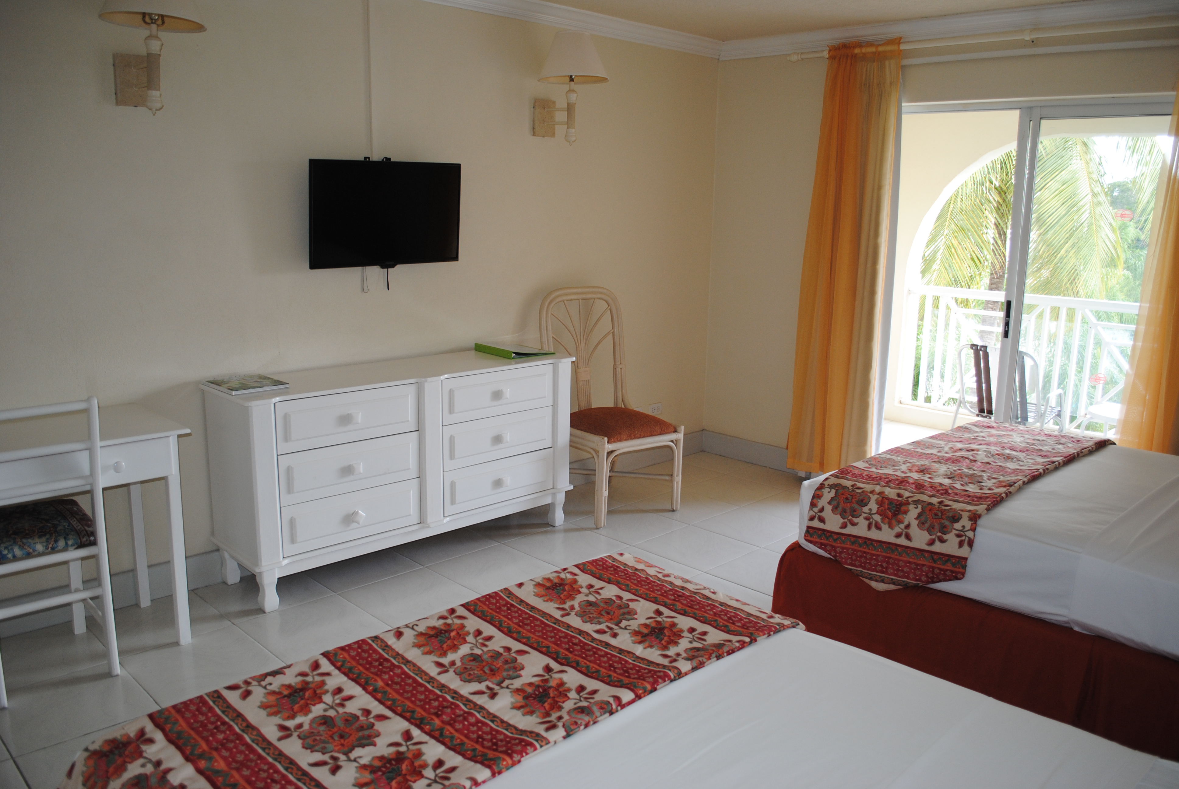 The Double Room offers a private balcony with lovely garden and pool views, two double beds, Caribbean-inspired decor and free WiFi. Breakfast plan available.